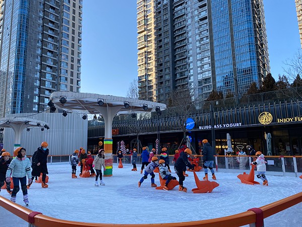 2月4日,市民在北京市朝陽(yáng)區(qū)三元橋附近的一家冰場(chǎng)享受冰雪運(yùn)動(dòng)樂(lè)趣。