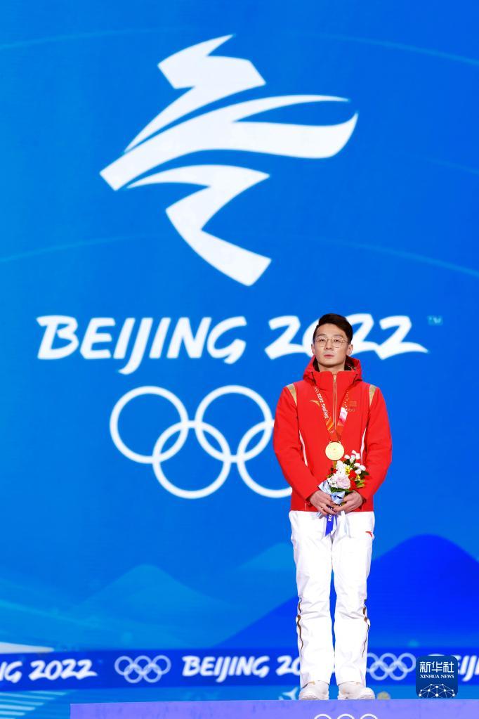 2月8日,短道速滑男子1000米比賽冠軍、中國選手任子威在獎牌頒發(fā)儀式上。新華社記者 鞠煥宗 攝