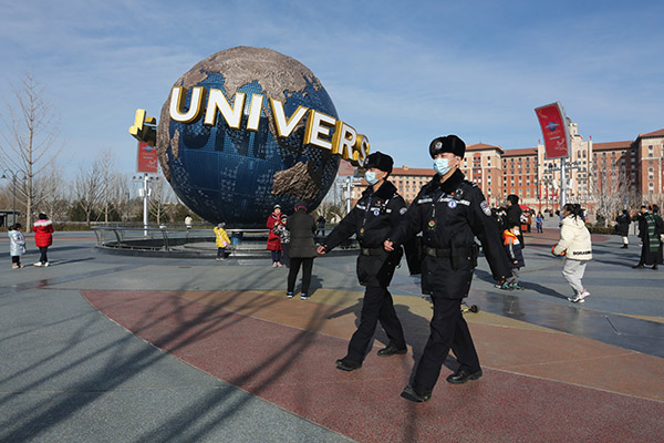 晴空如洗,游人如織。春節(jié)前夕,《法治日報》記者來到北京環(huán)球度假區(qū),跟隨北京市公安局通州分局文景派出所民警,體驗(yàn)他們“日行三萬步”的工作日常。