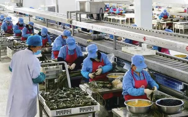 “鄉(xiāng)村要振興,產(chǎn)業(yè)要做大?!鼻扒嗵链妩h支部書記張新文說(shuō)。為實(shí)現(xiàn)鞏固脫貧成果上臺(tái)階、鄉(xiāng)村振興開(kāi)新局,山西省今年選擇具有一定基礎(chǔ)和發(fā)展?jié)摿Φ目h、鄉(xiāng)、村,先行開(kāi)展鄉(xiāng)村振興示范創(chuàng)建。前青塘村被列入鄉(xiāng)村振興示范村創(chuàng)建單位,現(xiàn)在家家戶戶發(fā)展粽子產(chǎn)業(yè)的勁頭更足了。2021年,新建成青塘村粽子產(chǎn)業(yè)園,日加工粽子規(guī)模達(dá)15萬(wàn)只,就地解決了村里170多名勞動(dòng)力就業(yè)。今年全村預(yù)計(jì)可加工銷售3000萬(wàn)只粽子,產(chǎn)值可突破8000萬(wàn)元,預(yù)計(jì)比去年增加3000萬(wàn)元。