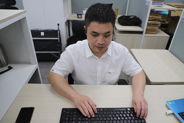 “您好,我是實習(xí)律師,請問您申請了勞動仲裁嗎?”在廣州城市中央的寫字樓內(nèi),盤銘徑正協(xié)助參與線上勞動爭議調(diào)解,這是他的工作日常。不久前,盤銘徑領(lǐng)取了法律職業(yè)資格證書,成為廣州首位領(lǐng)證上崗的視障實習(xí)律師。
