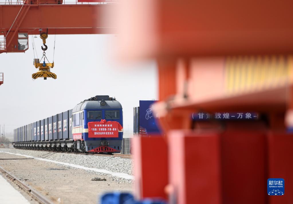 2022年4月21日,甘肅首趟中老鐵路國際貨運(yùn)列車在敦煌市鐵路西貨站綜合貨場等待發(fā)車。新華社記者 陳斌 攝