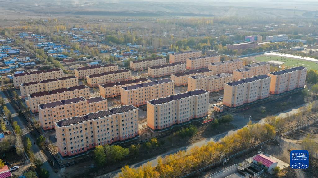 這是新疆昌吉市阿什里鄉(xiāng)天鵝小鎮(zhèn)(無人機(jī)照片,2020年10月16日攝)。天鵝小鎮(zhèn)是由福建援疆泉州分指揮部支援建設(shè)的牧民定居項(xiàng)目。新華社記者 丁磊 攝