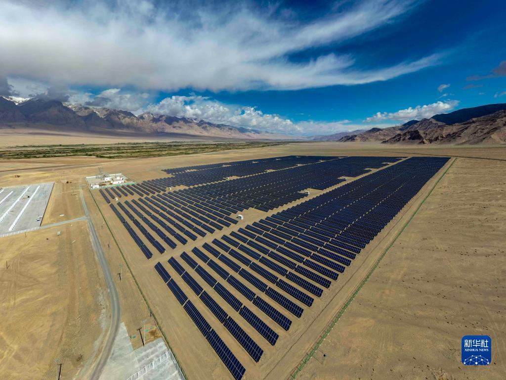 這是深圳援建的新疆塔什庫爾干塔吉克自治縣2萬千瓦太陽能光伏扶貧電站(無人機(jī)照片,2020年6月15日攝)。新華社記者 胡虎虎 攝