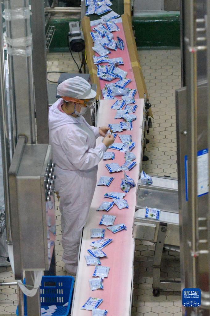 新疆天潤乳業(yè)股份有限公司的工作人員在生產(chǎn)線上忙碌(2020年3月1日攝)。新華社記者 丁磊 攝