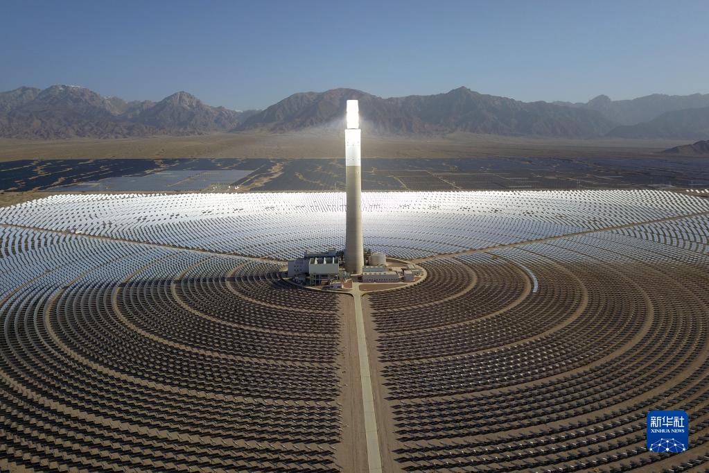 這是2022年6月8日在海西蒙古族藏族自治州德令哈市光伏(光熱)產(chǎn)業(yè)園拍攝的青海中控德令哈50兆瓦光熱電站(無人機(jī)照片)。新華社記者 范培珅 攝