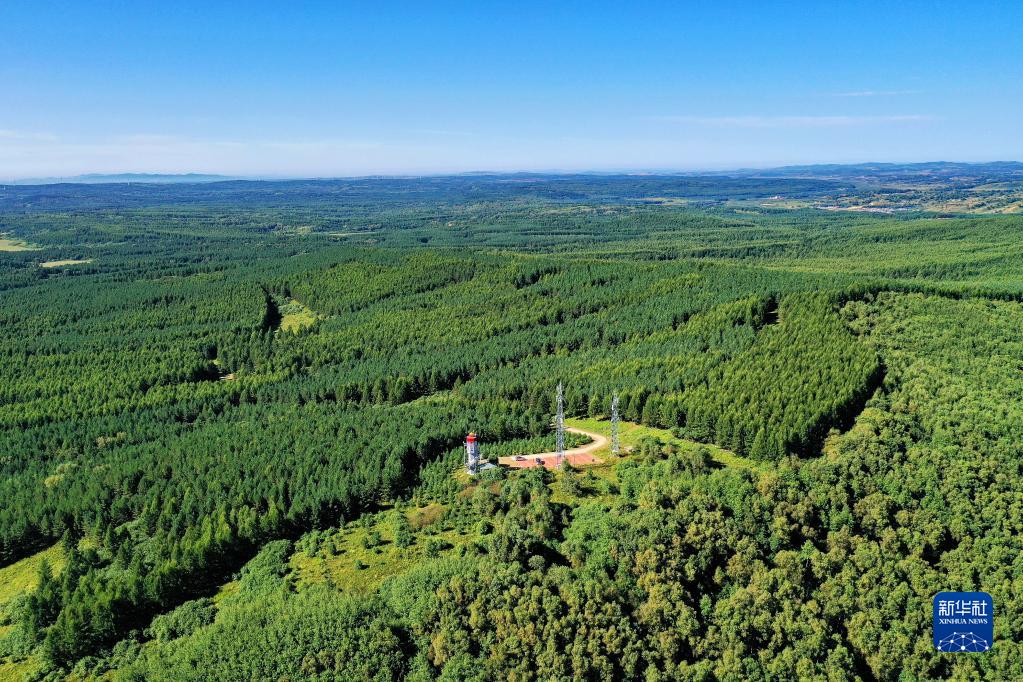 這是2021年8月23日拍攝的河北塞罕壩機(jī)械林場內(nèi)的望海樓(無人機(jī)照片)。三代塞罕壩林場人50多年堅(jiān)持植樹造林,用汗水澆灌出綠波涌動的百萬畝人工林海。新華社記者 牟宇 攝