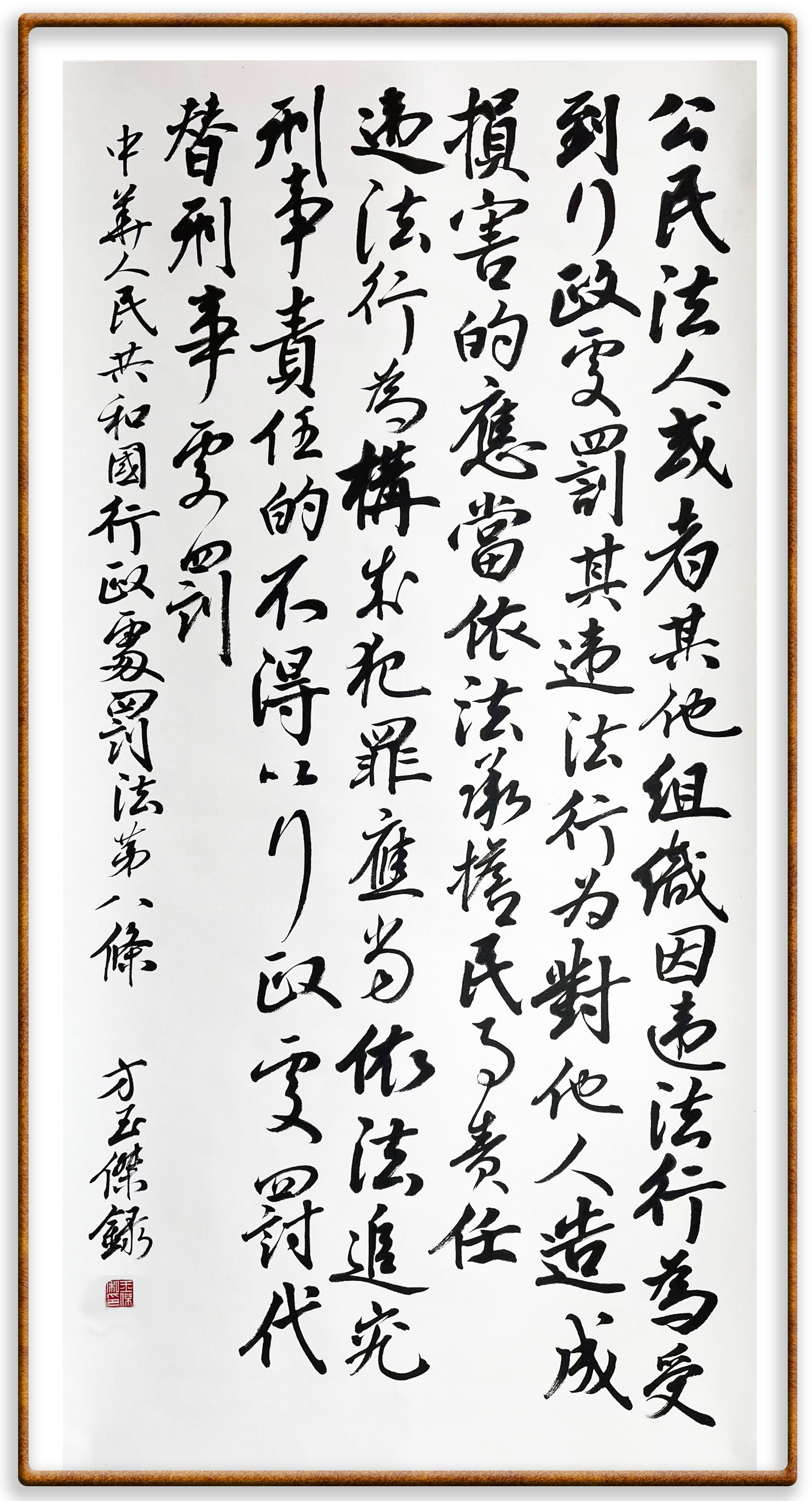 繼《中華人民共和國(guó)民法典》《中華人民共和國(guó)土地管理法》《中華人民共和國(guó)土地管理法實(shí)施條例》《中華人民共和國(guó)法律援助法》之后,法治日?qǐng)?bào)社聯(lián)合北京市司法局、北京市書法家協(xié)會(huì),將筆端對(duì)準(zhǔn)《中華人民共和國(guó)憲法》和《中華人民共和國(guó)行政處罰法》。