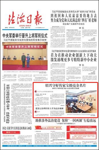一直以來,紹興都倍加珍惜“楓橋經(jīng)驗”這個“傳家寶”,倍加呵護這張“金名片”。去年以來,紹興市起草制定《紹興市“楓橋經(jīng)驗”傳承發(fā)展條例》(目前已提請省人大常委會審議批準),通過立法,把“楓橋經(jīng)驗”這一基層治理經(jīng)驗上升為普遍的法治規(guī)則,總結(jié)提煉轉(zhuǎn)化為社會治理中具有普遍意義的法治模式。