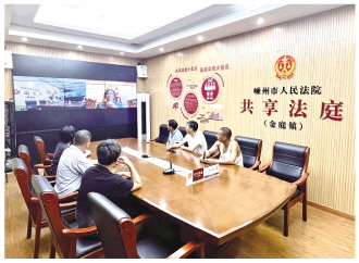 圖為2022年8月5日,紹興嵊州金庭鎮(zhèn)當事人在“共享法庭”與法官遠程連線,在線化解糾紛。 紹興中院供圖