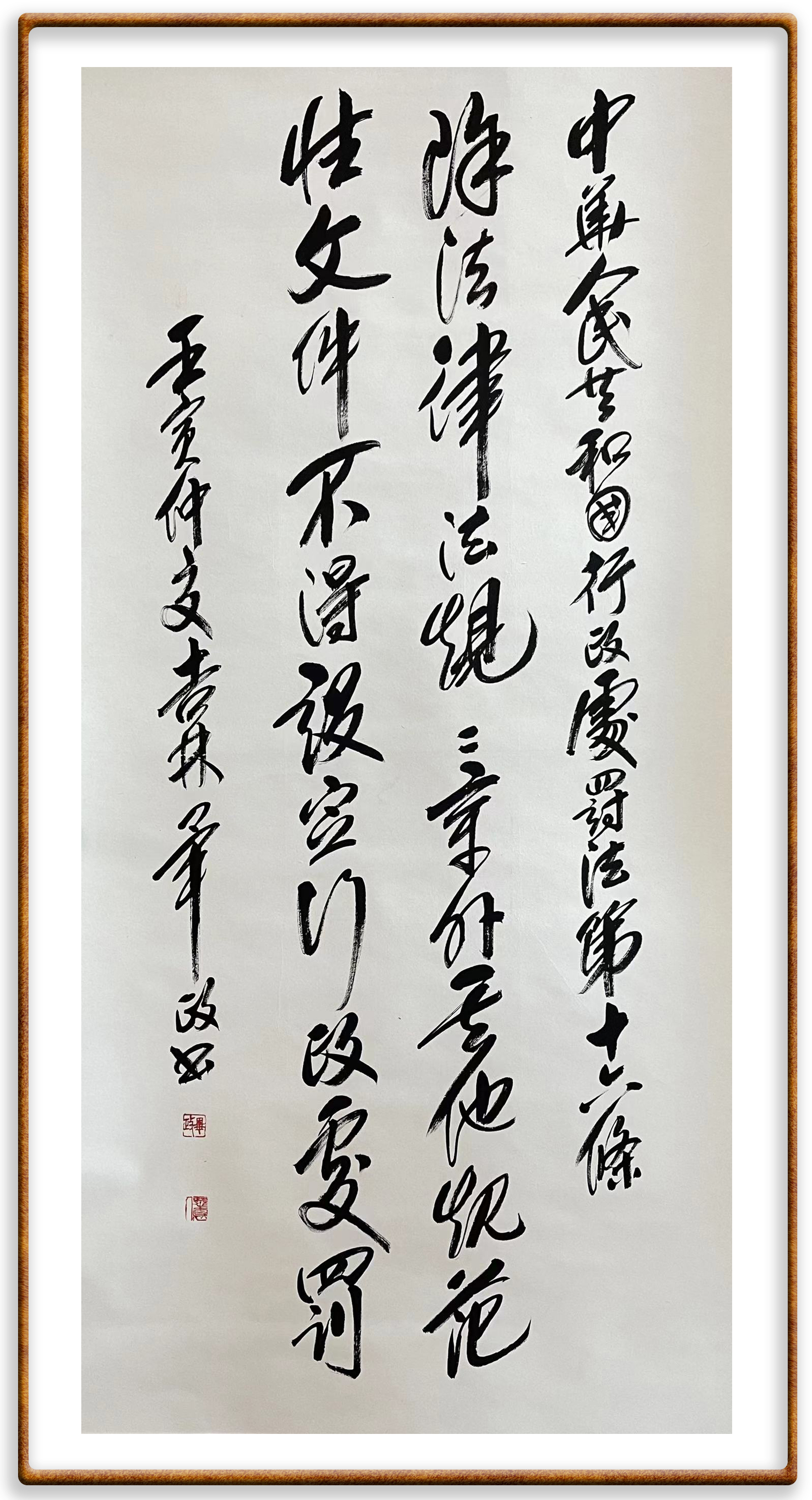 繼《中華人民共和國民法典》《中華人民共和國土地管理法》《中華人民共和國土地管理法實(shí)施條例》《中華人民共和國法律援助法》之后,法治日報(bào)社聯(lián)合北京市司法局、北京市書法家協(xié)會(huì),將筆端對準(zhǔn)《中華人民共和國憲法》和《中華人民共和國行政處罰法》。