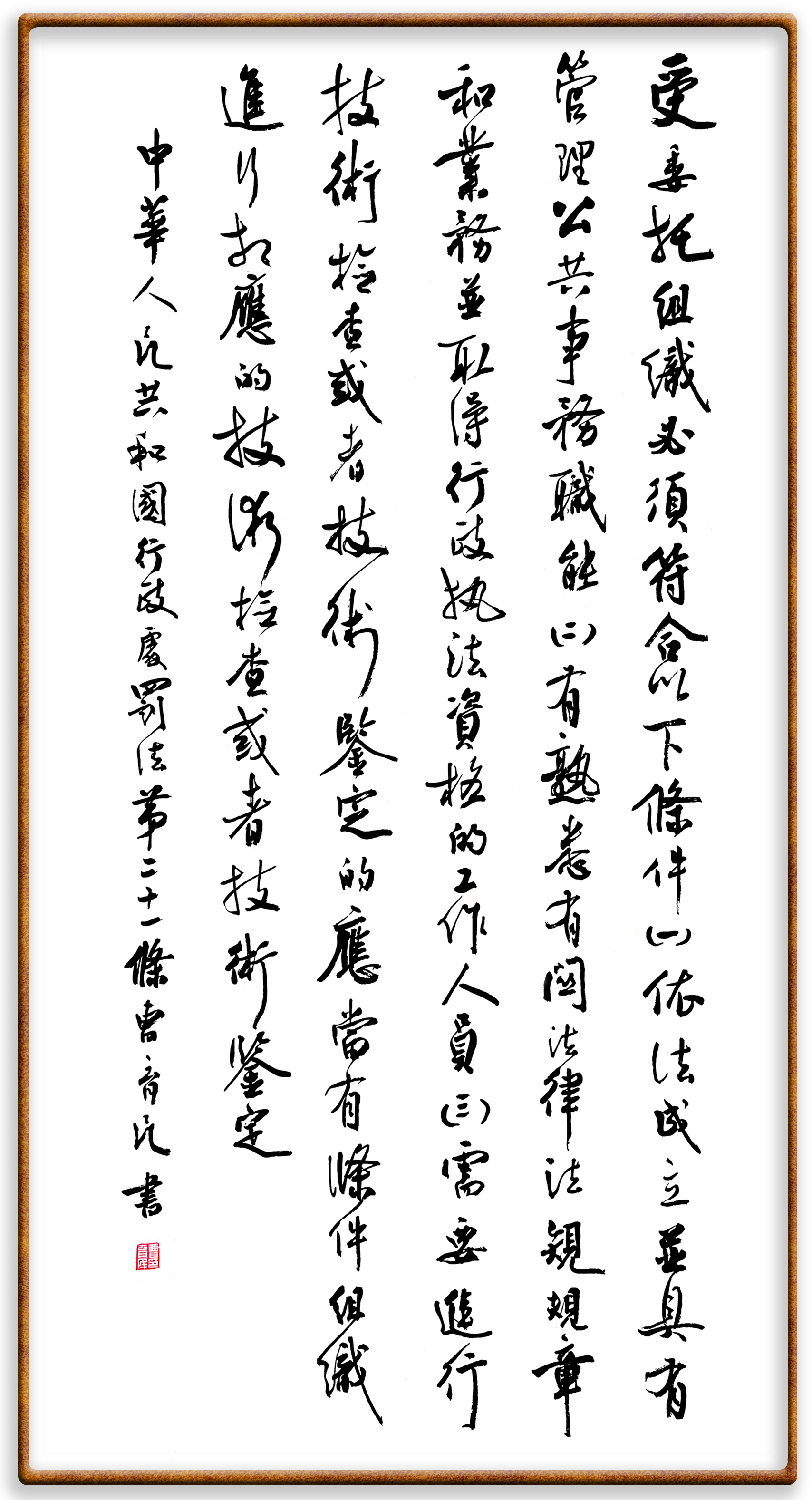 繼《中華人民共和國民法典》《中華人民共和國土地管理法》《中華人民共和國土地管理法實(shí)施條例》《中華人民共和國法律援助法》之后,法治日?qǐng)?bào)社聯(lián)合北京市司法局、北京市書法家協(xié)會(huì),將筆端對(duì)準(zhǔn)《中華人民共和國憲法》和《中華人民共和國行政處罰法》。
