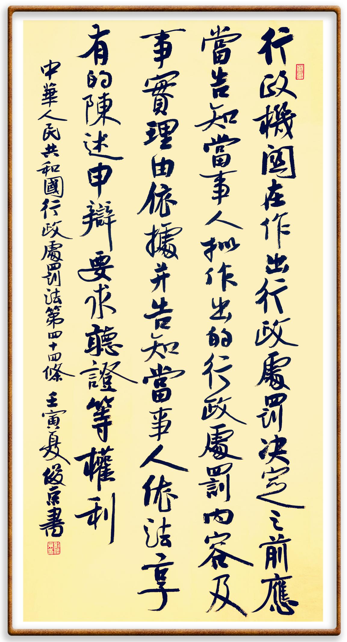 繼《中華人民共和國民法典》《中華人民共和國土地管理法》《中華人民共和國土地管理法實施條例》《中華人民共和國法律援助法》之后,法治日報社聯(lián)合北京市司法局、北京市書法家協(xié)會,將筆端對準《中華人民共和國憲法》和《中華人民共和國行政處罰法》。