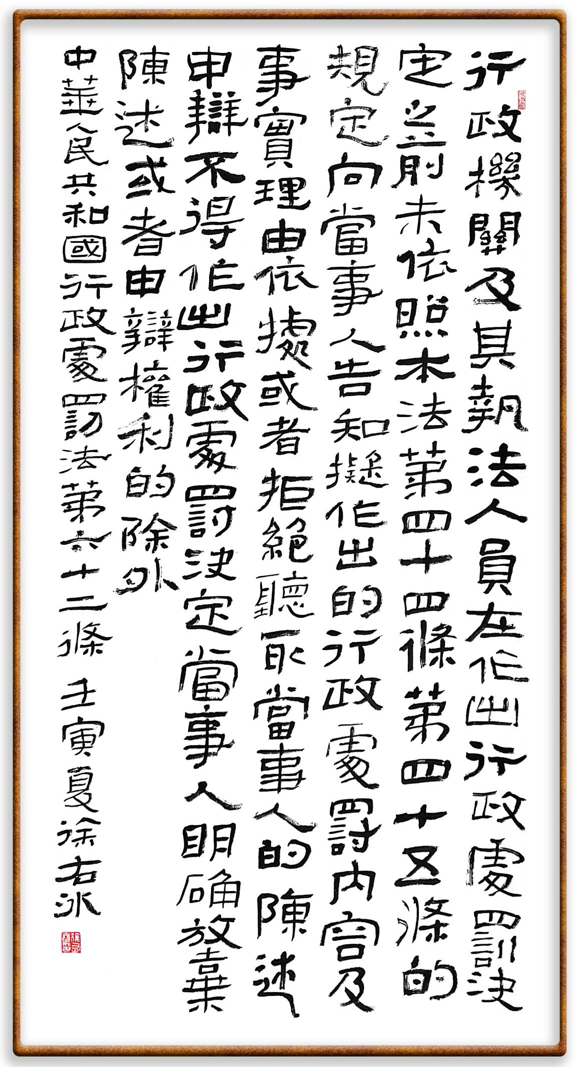 繼《中華人民共和國民法典》《中華人民共和國土地管理法》《中華人民共和國土地管理法實施條例》《中華人民共和國法律援助法》之后,法治日報社聯(lián)合北京市司法局、北京書法家協(xié)會,將筆端對準《中華人民共和國憲法》和《中華人民共和國行政處罰法》。