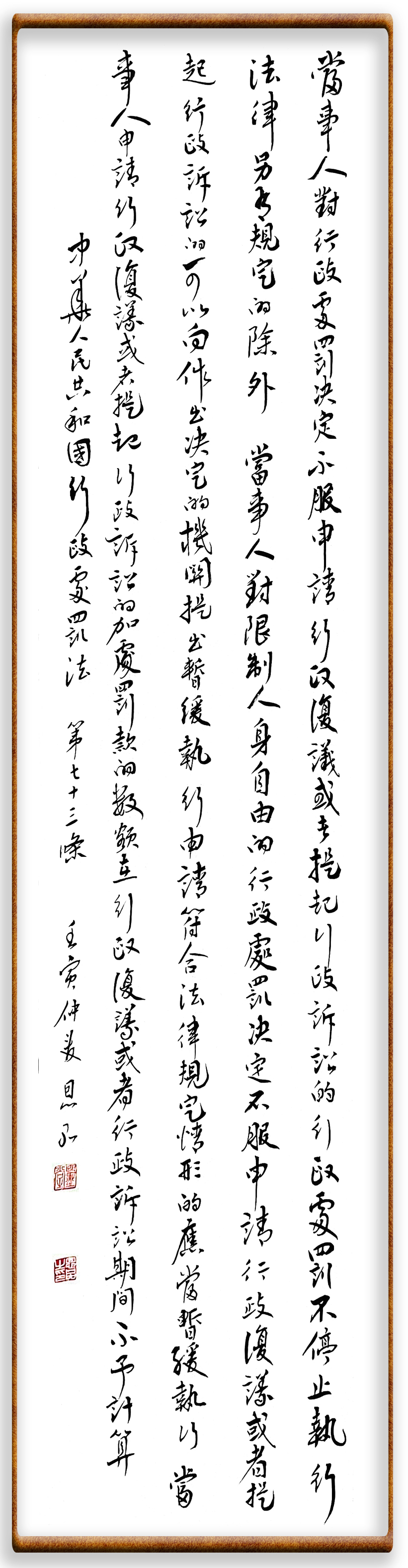繼《中華人民共和國民法典》《中華人民共和國土地管理法》《中華人民共和國土地管理法實施條例》《中華人民共和國法律援助法》之后,法治日報社聯(lián)合北京市司法局、北京書法家協(xié)會,將筆端對準《中華人民共和國憲法》和《中華人民共和國行政處罰法》。