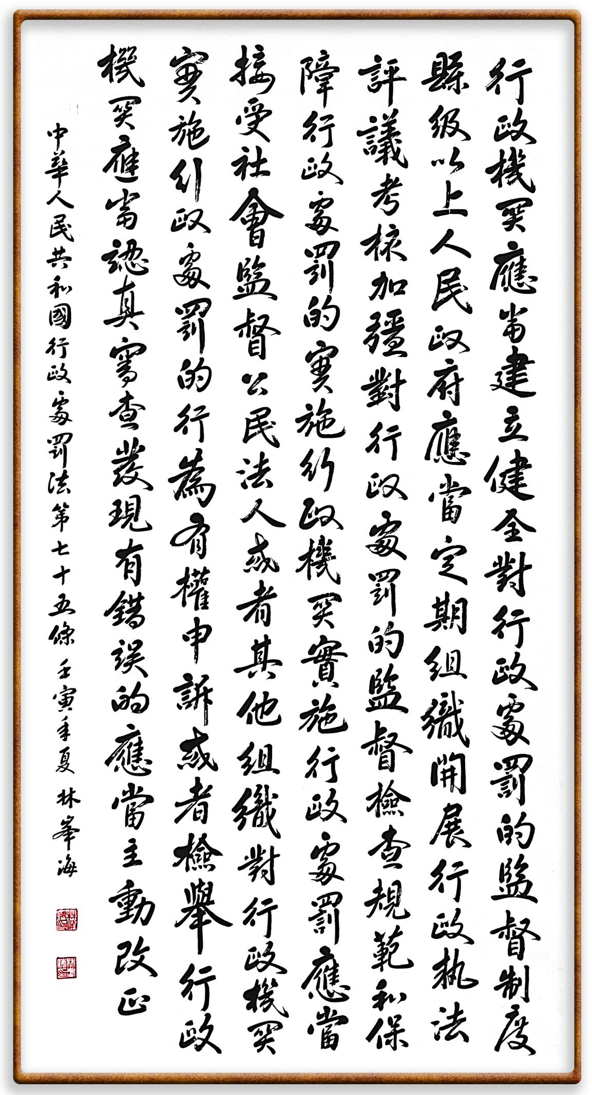 繼《中華人民共和國(guó)民法典》《中華人民共和國(guó)土地管理法》《中華人民共和國(guó)土地管理法實(shí)施條例》《中華人民共和國(guó)法律援助法》之后,法治日?qǐng)?bào)社聯(lián)合北京市司法局、北京書(shū)法家協(xié)會(huì),將筆端對(duì)準(zhǔn)《中華人民共和國(guó)憲法》和《中華人民共和國(guó)行政處罰法》。