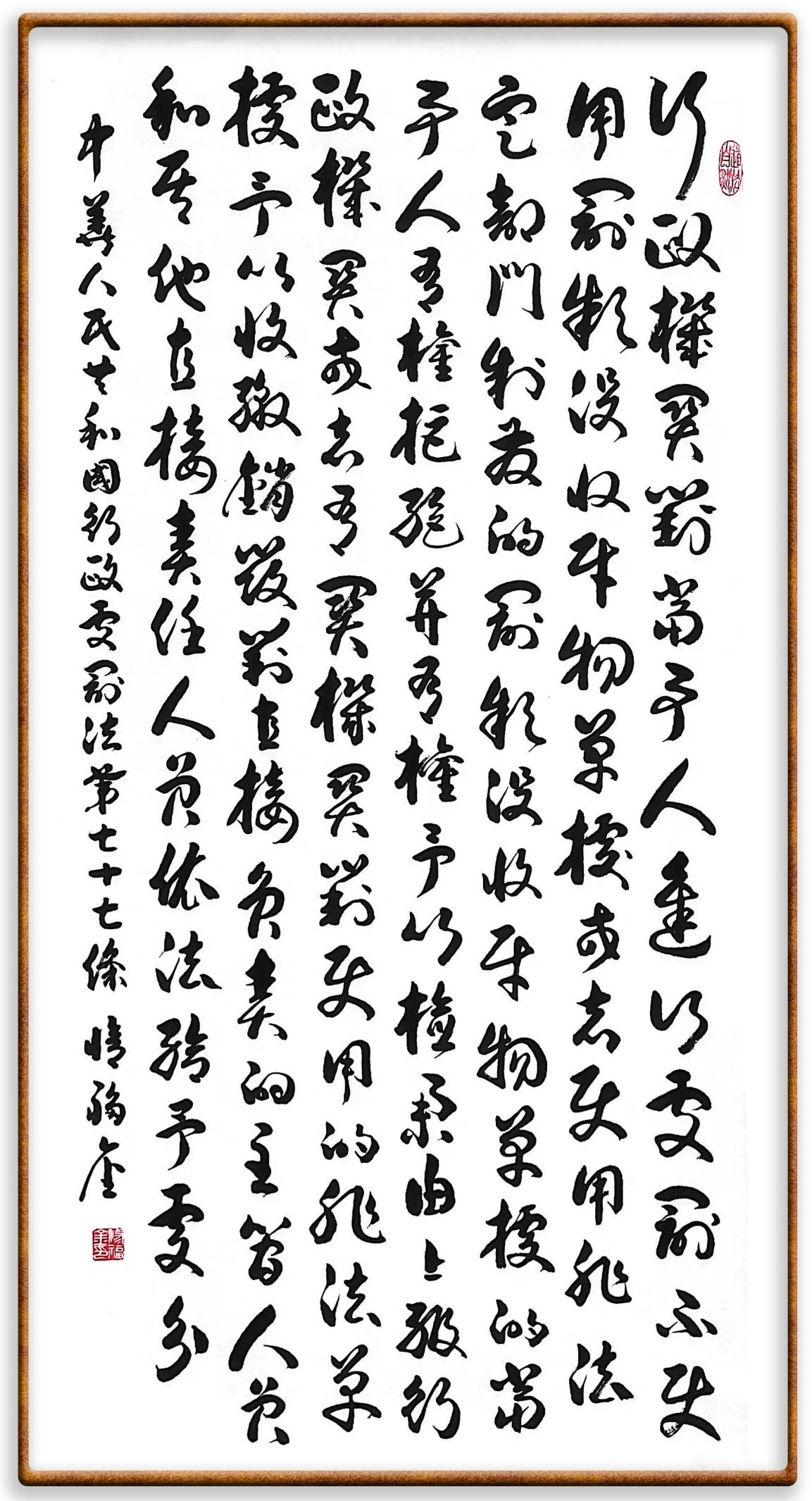 繼《中華人民共和國(guó)民法典》《中華人民共和國(guó)土地管理法》《中華人民共和國(guó)土地管理法實(shí)施條例》《中華人民共和國(guó)法律援助法》之后,法治日?qǐng)?bào)社聯(lián)合北京市司法局、北京書法家協(xié)會(huì),將筆端對(duì)準(zhǔn)《中華人民共和國(guó)憲法》和《中華人民共和國(guó)行政處罰法》。