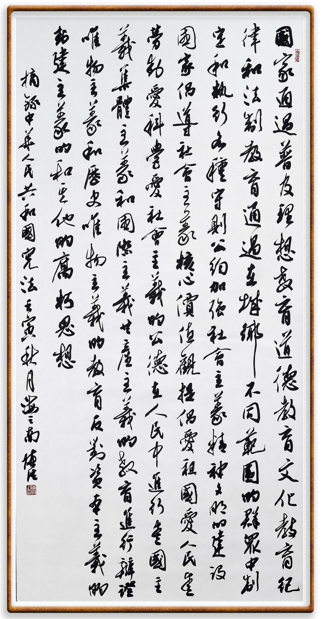 繼《中華人民共和國民法典》《中華人民共和國土地管理法》《中華人民共和國土地管理法實(shí)施條例》《中華人民共和國法律援助法》之后,法治日報(bào)社聯(lián)合北京市司法局、北京書法家協(xié)會,將筆端對準(zhǔn)《中華人民共和國憲法》和《中華人民共和國行政處罰法》。
