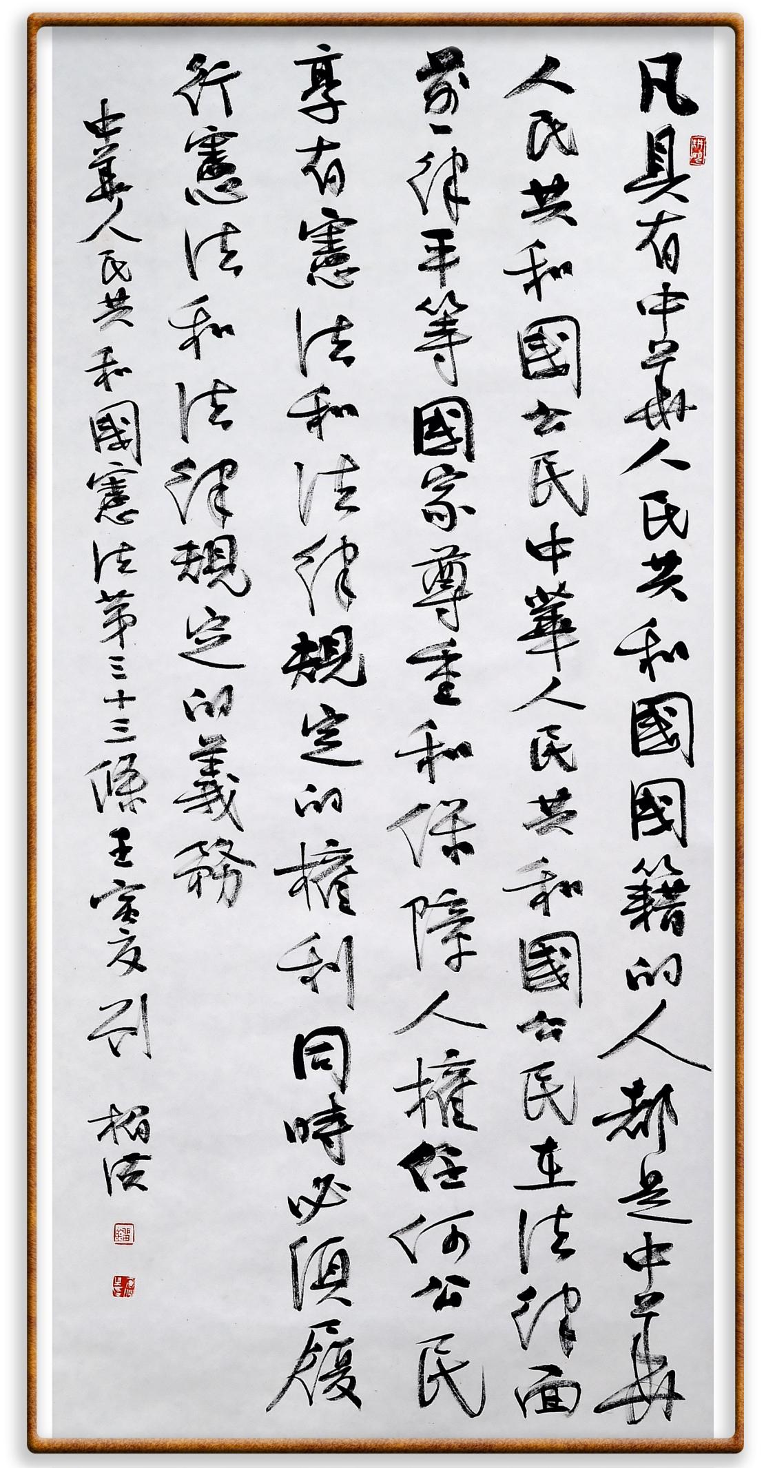 繼《中華人民共和國民法典》《中華人民共和國土地管理法》《中華人民共和國土地管理法實(shí)施條例》《中華人民共和國法律援助法》之后,法治日報社聯(lián)合北京市司法局、北京書法家協(xié)會,將筆端對準(zhǔn)《中華人民共和國憲法》和《中華人民共和國行政處罰法》。