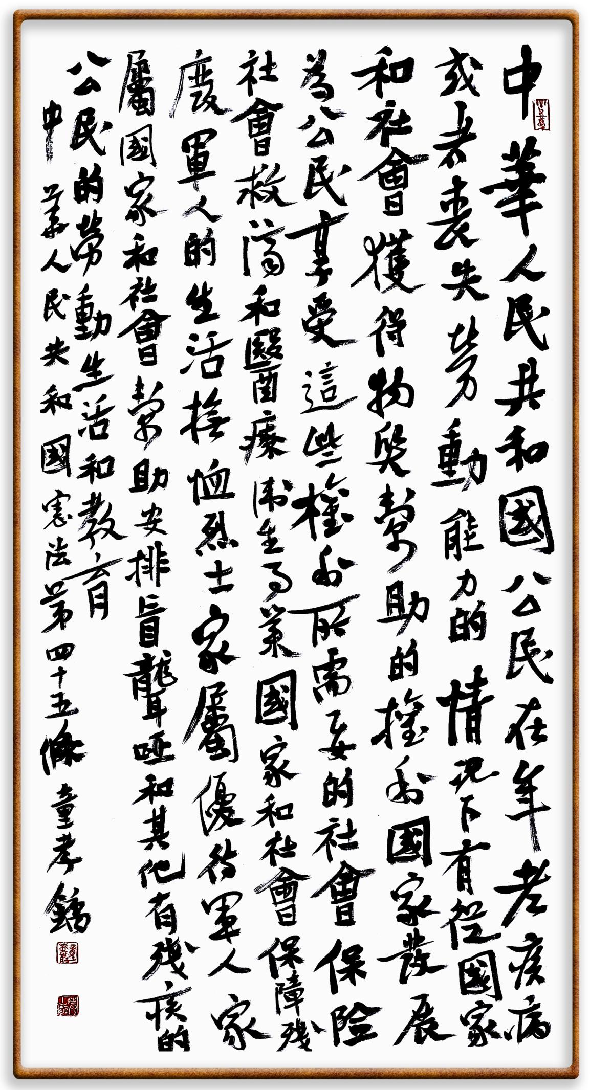 繼《中華人民共和國民法典》《中華人民共和國土地管理法》《中華人民共和國土地管理法實(shí)施條例》《中華人民共和國法律援助法》之后,法治日?qǐng)?bào)社聯(lián)合北京市司法局、北京書法家協(xié)會(huì),將筆端對(duì)準(zhǔn)《中華人民共和國憲法》和《中華人民共和國行政處罰法》。
